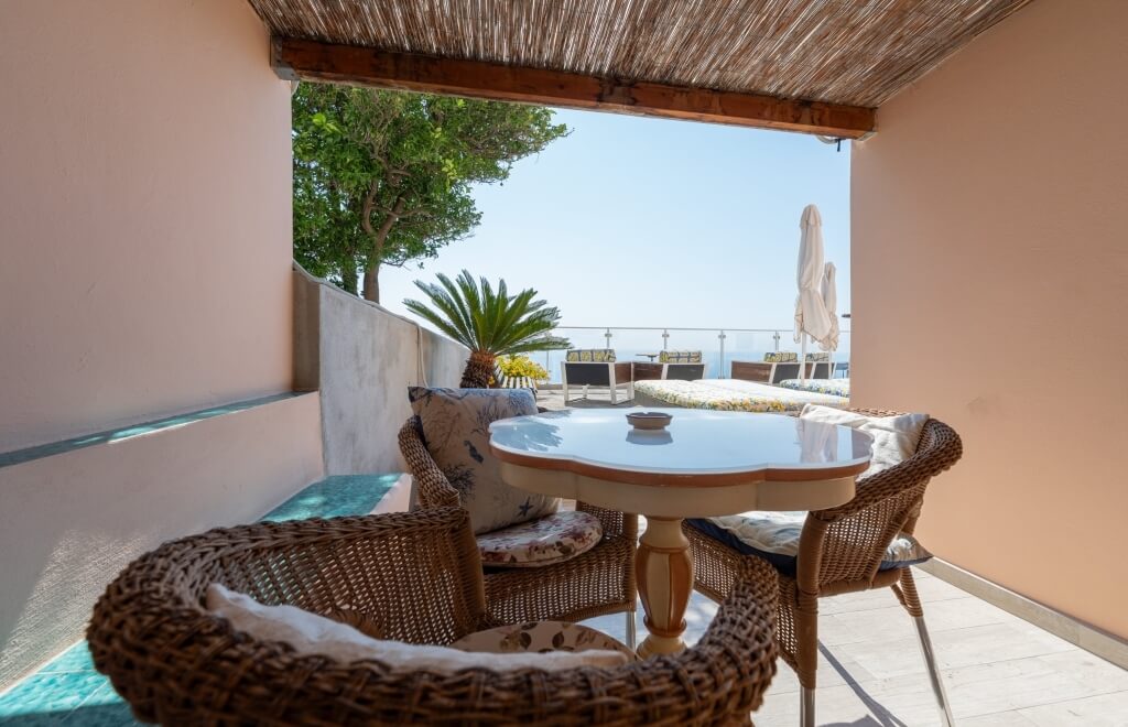 The apartment is decorated in Mediterranean tones and meticulously detailed with authentic Vietri ceramics. It is equipped with all the modern comforts: autonomous air conditioning, Wi-Fi internet connection in the room, satellite TV with a Sky cinema and sports package, minibar, kettle, and soundproof balconies.