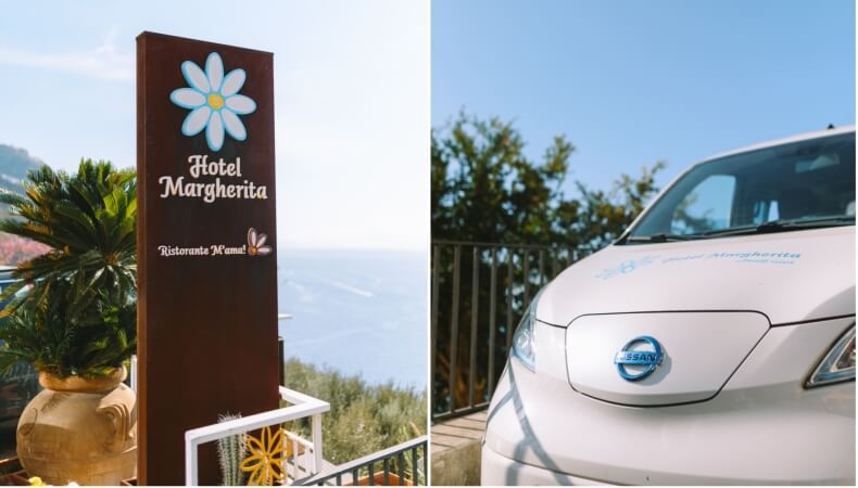 100% GREEN ENERGY We have chosen to use a 100% Green Energy supply thanks to the contract with Enel. It is the same clean energy that charges our electric car, the zero emission one with which you can discover the surroundings of our hotel in Praiano and which we use to take you to the beach.