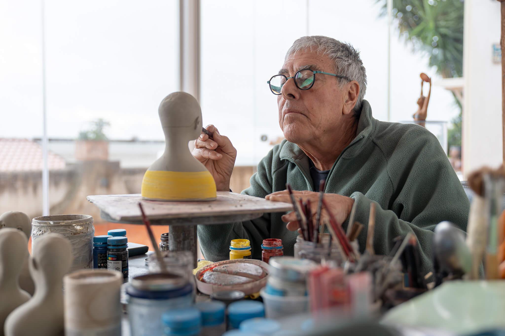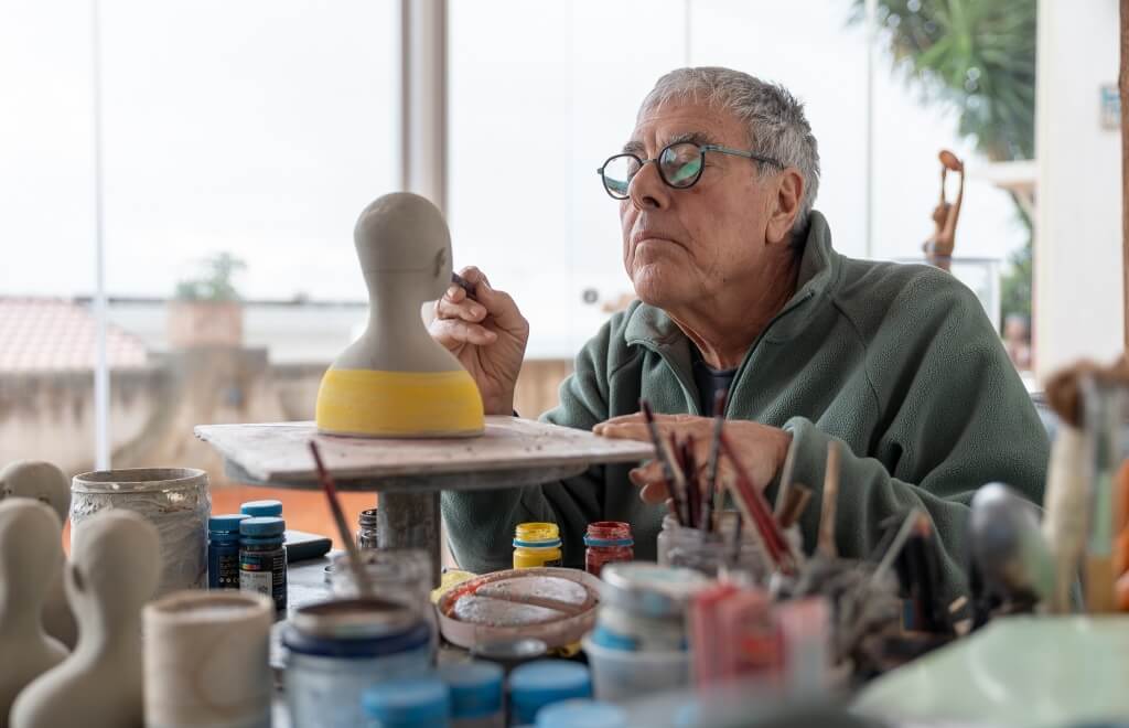 The studio is "a small museum that houses a collection," as he himself defines it – a refuge of authenticity that tells not only of his works, but also of the history of artists who have passed through the Coast. International celebrities such as Harrison Ford, Pierce Brosnan, Baroness Rothschild, and Sharon Stone have visited his studio. "Sharon Stone arrived barefoot, without announcing her visit," he recalls with a smile. "I hadn't recognised her."