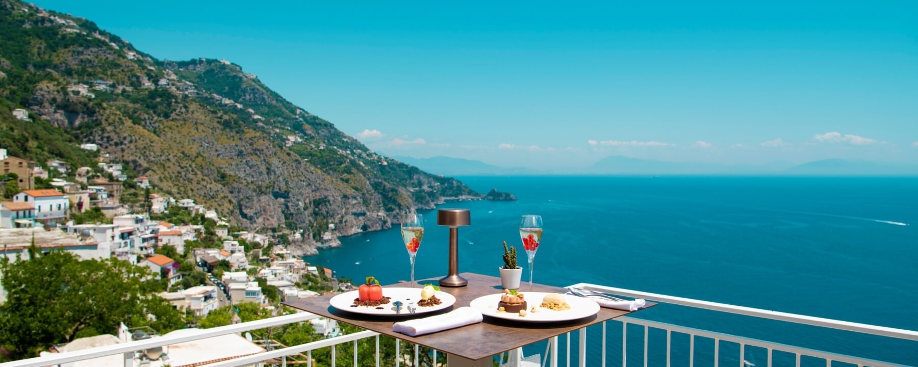 Un percorso gastronomico che prende avvio nella tradizione della cucina mediterranea sulla Costa d’Amalfi, presentato nel delizioso palcoscenico di una straordinaria terrazza panoramica, sospesa tra cielo e mare.
