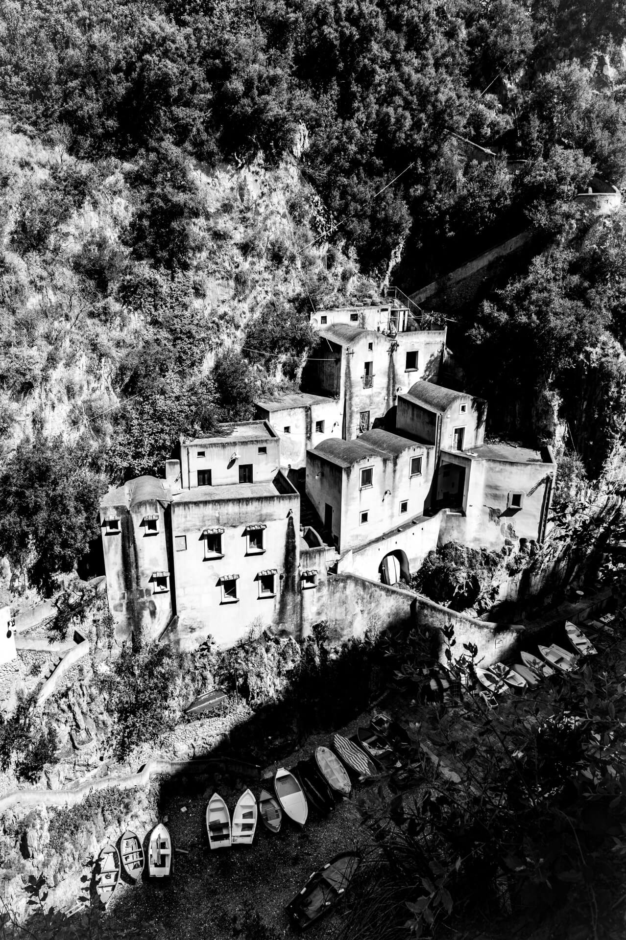 Esiste un modo di guardare la Costiera Amalfitana che sfugge alla frenesia del turismo mordi e fuggi, che rifiuta i filtri di Instagram e cerca invece l'essenza pura dei luoghi. È il bianco e nero di Vito Fusco: fotografie che tolgono la variabile tempo per rivelare ciò che è sempre stato qui — le falesie che cambiano forma a ogni minuto di luce, le architetture che sfumano in infinite variazioni di ombre, i pescatori che custodiscono gesti antichi.